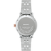 The mother-of-pearl dial with a delicate pink gradient plays cleverly with the light – like a cocktail glass in the evening light. Rose-gold hands, indices, and crown add warm accents, while the two-tone bracelet provides contrast and character. The round stainless steel case in 34 mm is deliberately feminine, understated yet present – ideal for slender wrists or as a stylish contrast to a more masculine style.