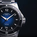 Das Gehäuse aus poliertem und geschliffenem Edelstahl misst 42,5 mm im Durchmesser und ist mit einer beidseitig drehbaren Keramiklünette ausgestattet. Die Krone ist verschraubt, das 2,2 mm starke Saphirglas beidseitig entspiegelt. Ein Sichtboden erlaubt den Blick auf das veredelte Automatikwerk.